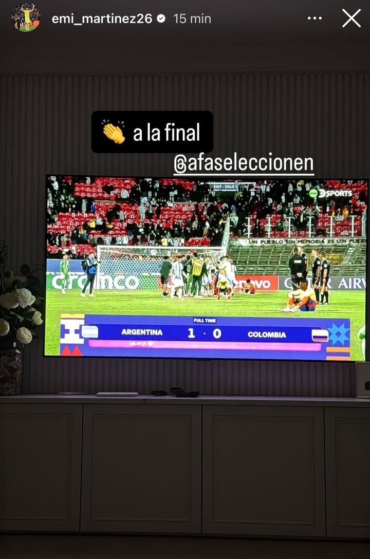 随着终场哨响,其他国脚也纷纷加入庆祝行列:大马丁晒出青年队庆祝的照片,配文“进入决赛了!”,简洁有力地表达支持。帕雷德斯分享庆祝画面,写道“进入决赛了”,并附上掌声表情。恩佐发文更为深情:“小伙子们,再进一步!周日,我们全力支持你们!” 并配上两颗天蓝色与白色的爱心,表达对国家队未来的期待。